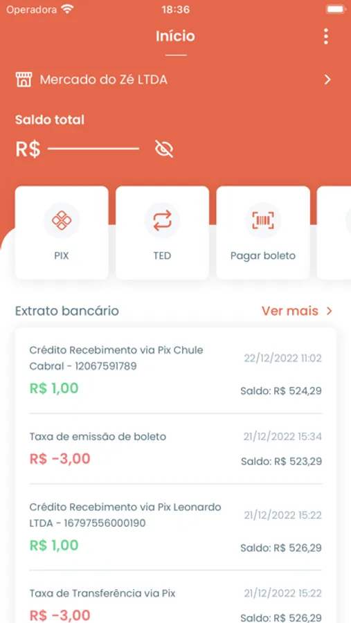 Faça transferências e pagamentos com o PIX, transferência TED, transferência entre contas (P2P), pagamento de boletos e saque bancário.
