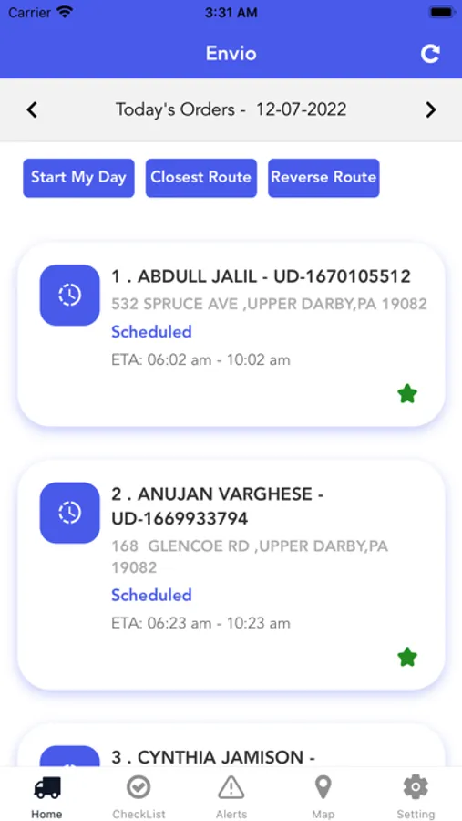Envio removes the hassle of time-consuming call-ins and check-ins with automated phone calls and automated text messages to help both the clients and drivers stay in the know about their delivery status.