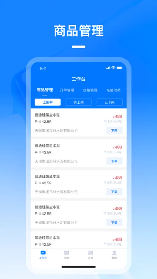 大尧之山建材交易平台商家端是专门为平台商家用户提供的移动端软件。客户端集成了商家端的大部分功能,便于商家用户随时随地处理各项业务,商家用户可登录客户端,通过客户端处理交易平台日常业务,例如:商品上下架、商品价格修改、客户业务咨询回复、订单跟踪处理等。