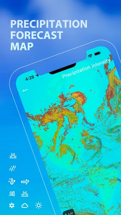 - View all weather information: sunrise, sunset, incoming rain, wind, pressure, and chance of precipitation.