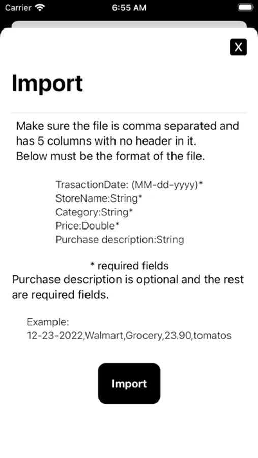 - import transactions from a bank statement in CSV [Comma Separated File].