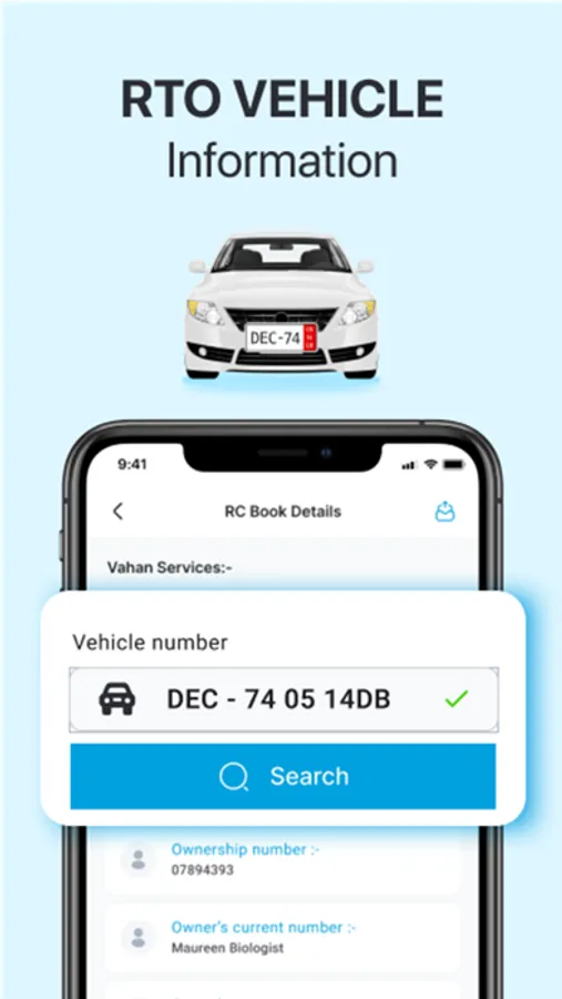 - Use the number plate scanner to easily find out RC details and RC status. You can view useful info such as the name & address of the vehicle owner, vehicle model, class, insurance, engine details, fuel type and much more.