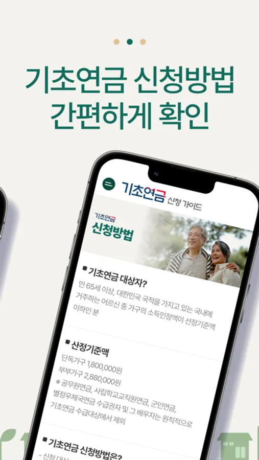 기초연금에 대한 제도를 소개하며, 대상자 자격 정보 확인이 가능합니다.