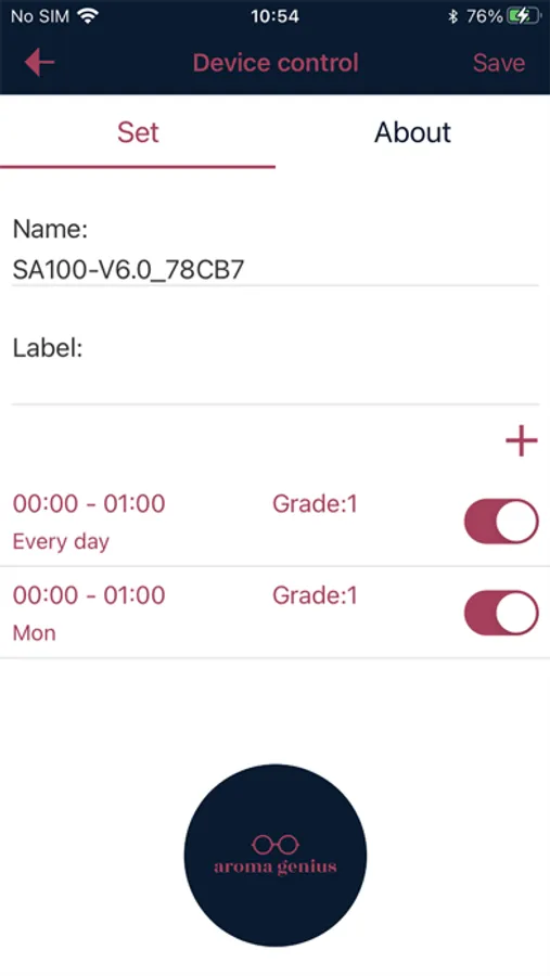 App for your smart aroma genius diffuser for home or office. You can create whatever setting for time and day