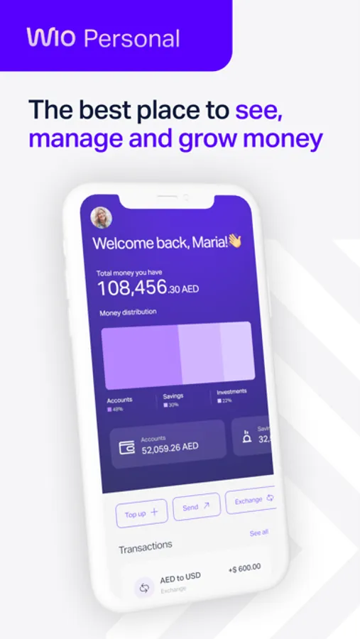 • Earn 6% p.a. interest on Saving Spaces balances above AED 35,000 up to AED 5 million when you sign up to Wio Personal 'Plus' Plan.