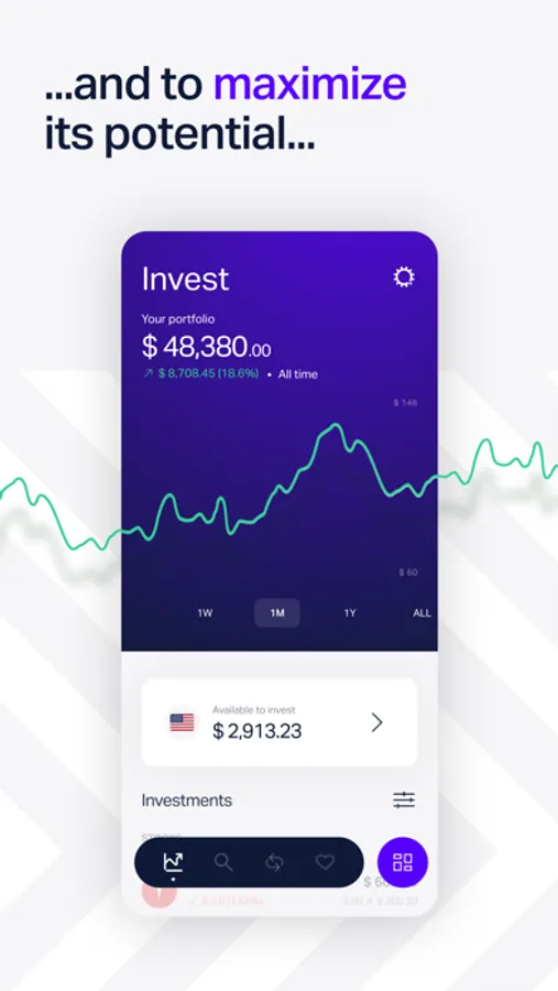 • Access thousands of stocks & ETFs and start investing with only $1 in the same app.