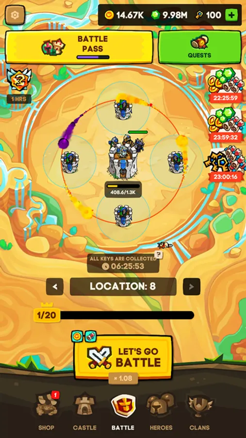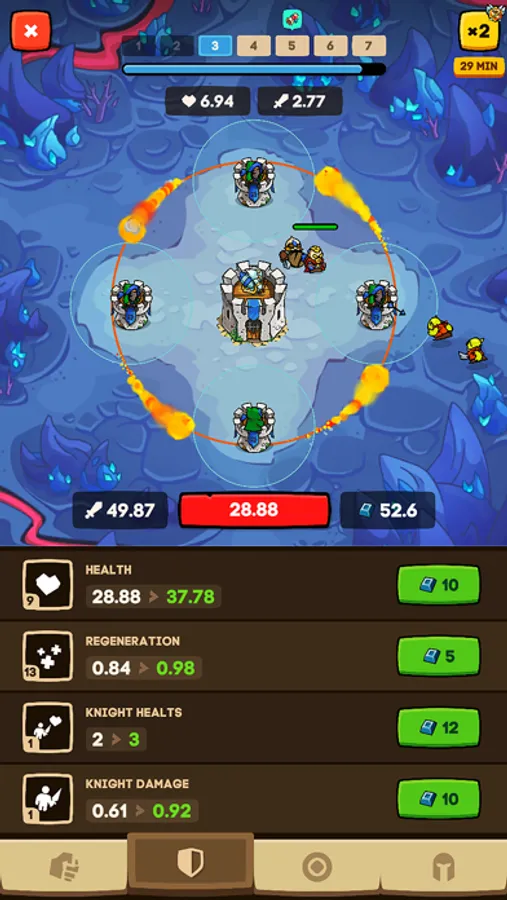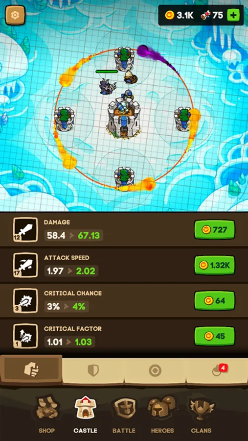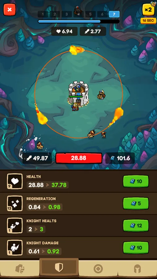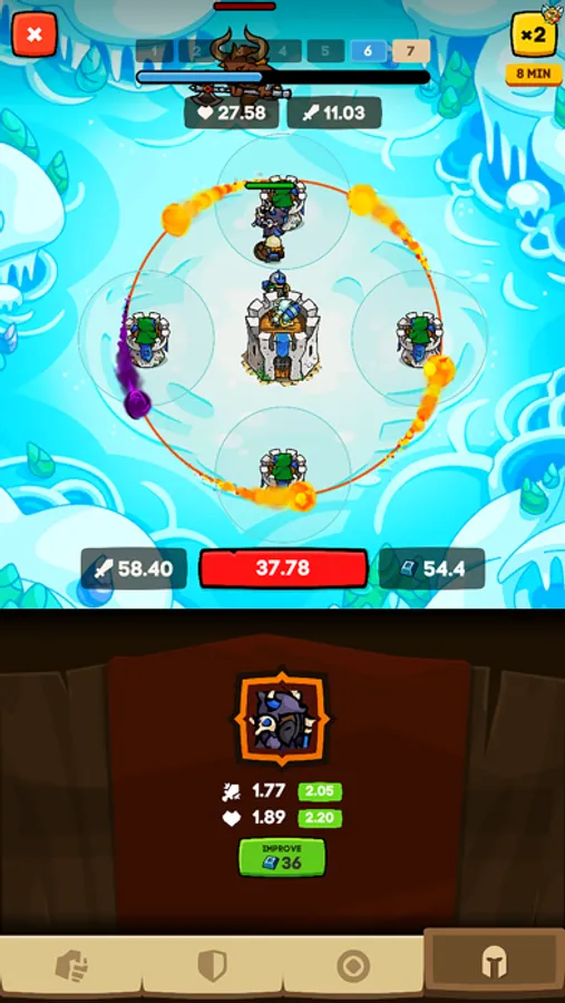 Use iron during battle to manage resources, grow power and defense of your tower. After battle wisely invest gold into permanent upgrades. Pay attention to the long-term perspective and unlock new abilities, allowing you to make game-changing improvements.