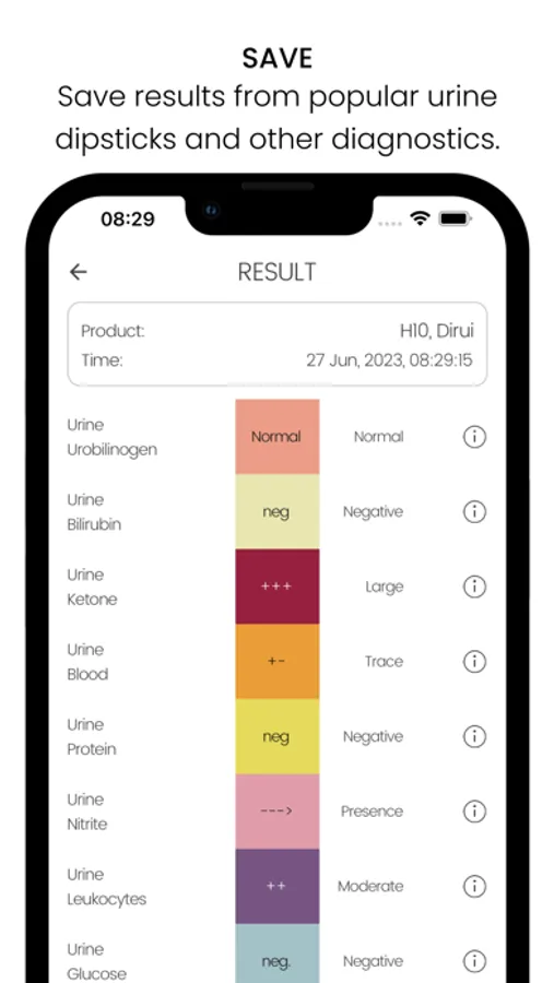 • take a photo of your test strip or your urine sample. This useful feature allows review of your results by a medical professional and ensures that test strips or your urine sample stay part of your health record.
