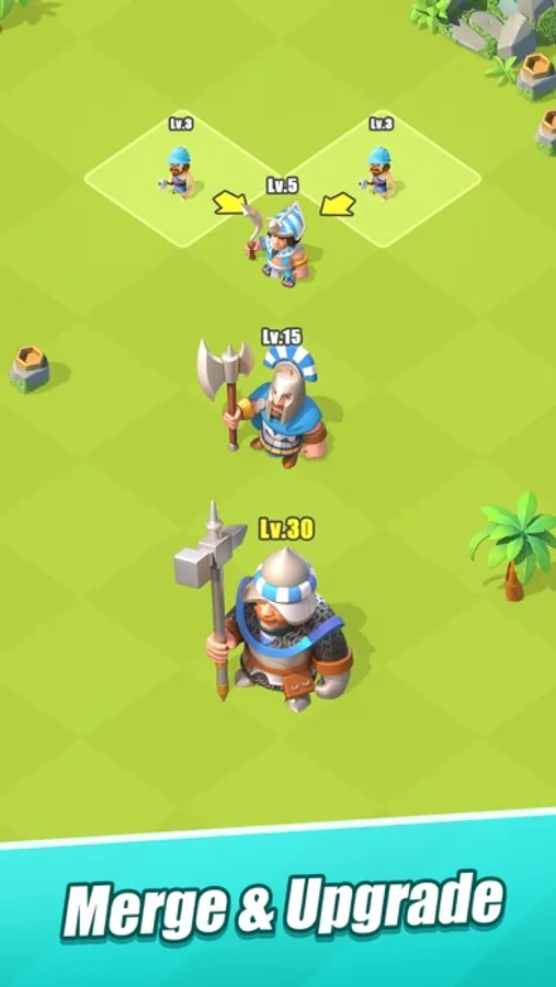 Many legends have humble beginnings, and the greatest empires may rise from a tiny village. Beginning from a primitive camp on your own corner of an island, grow your kingdom and army, merging units and buildings to become a powerful kingdom capable of protecting itself and dealing with all manner of threats. Advance through the ages, conducting research and gaining access to powerful heroes as you build an empire that will become legendary.