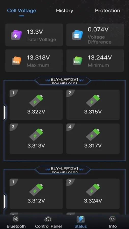 2. Display the real-time voltage, alarm status and trigger alarm value or protection value of all single batteries;