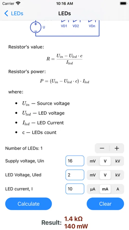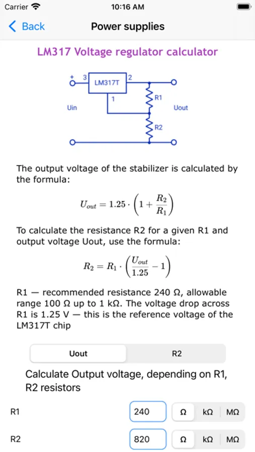 It contains calculators for circuit designers to help quickly solve following calculations: