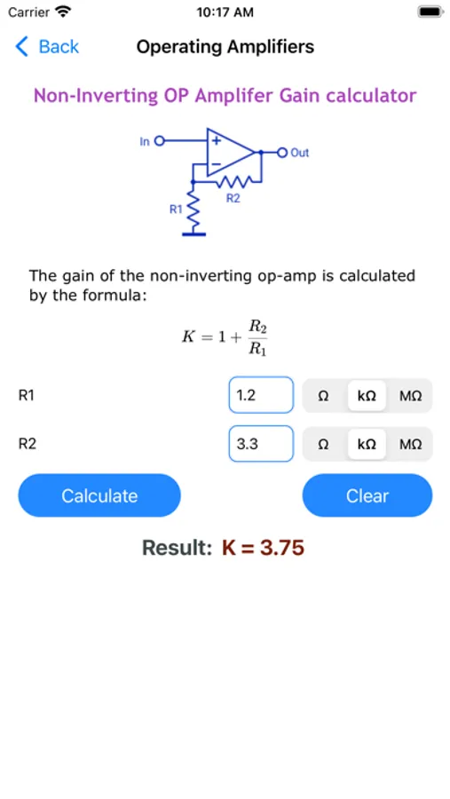 Operating Amplifiers - Calculation of non-Inverting and inverting amplifier gain