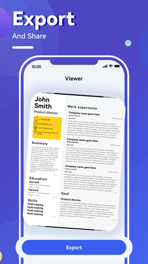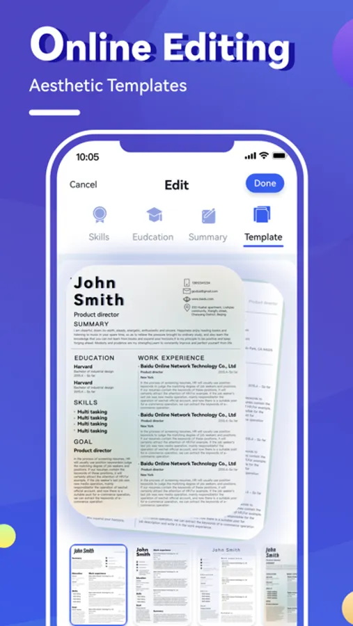 Resume templates are used all with one click, intelligent typesetting, modifying export anytime, anywhere.
