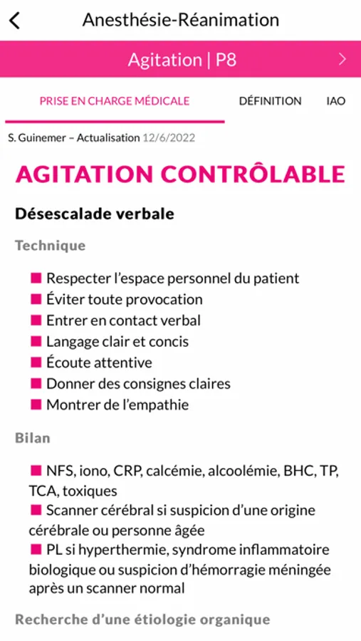De nouveaux protocoles ont été ajoutés (parmi eux, la prise en charge des victimes de violence conjugale). Les ordonnances de sorties sont individualisées dans la plupart des fiches.
