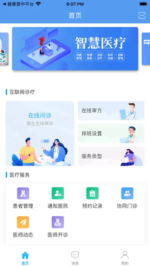 通过互联网平台整合医疗资源为居民和医生等用户提供医患沟通、便捷就医、健康教育、疾病防治、在线开方、线上诊疗、办公管理、信息查询等服务内容。