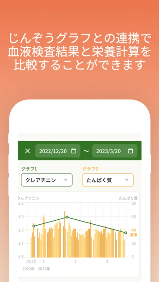 ・血液検査記録アプリと連携し、検査結果と栄養計算の記録を比較することができる