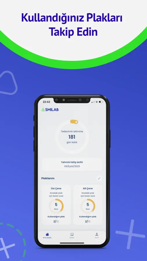 SMILAB, şeffaf plak tedavinizin her adımında yanınızda. Tedaviniz boyunca konforunuzu artıracak birçok fonksiyona aplikasyon üzerinden erişebilirsiniz.