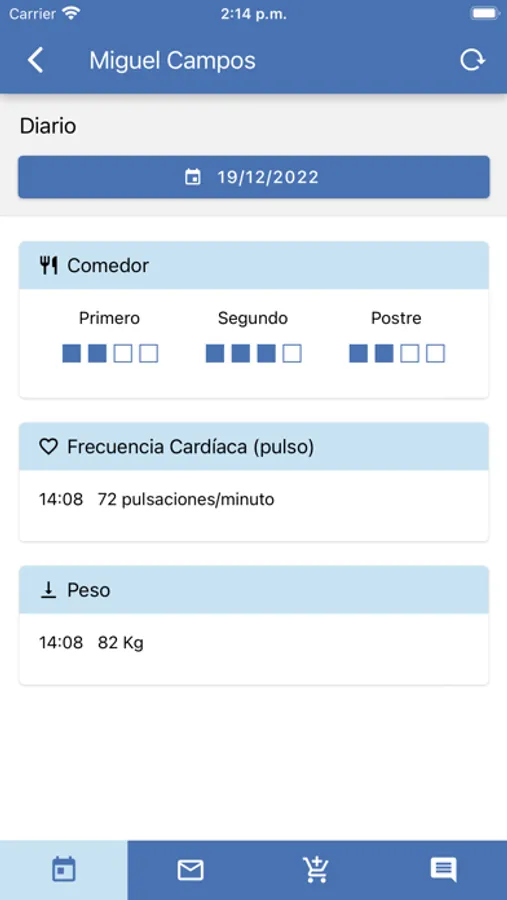 También podrás llevar el seguimiento diario del familiar de un vistazo y estar al día de sus progresos: