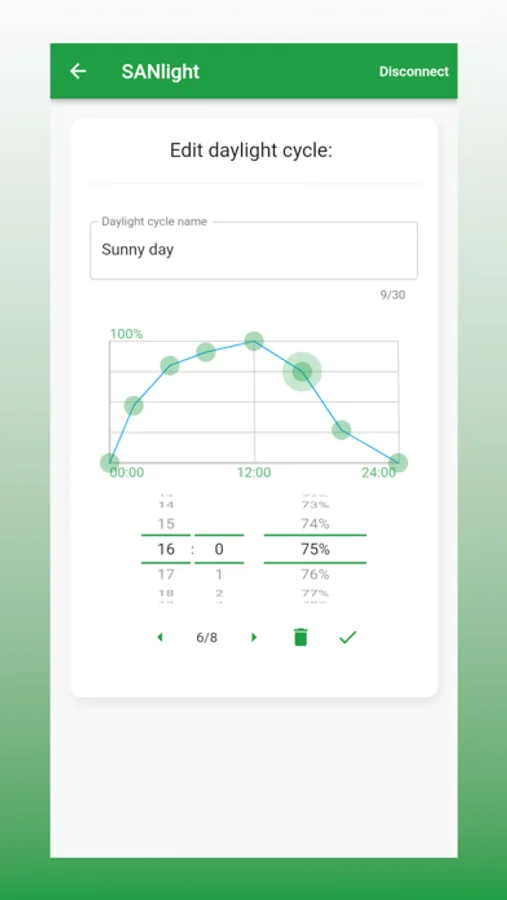 The SANlight app to control the brightness of SANlight grow LEDs connected to a Bluetooth dimmer.