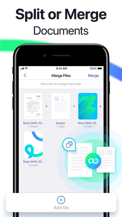 Extract a page from a large document or merge several files into one with Split and Merge features!