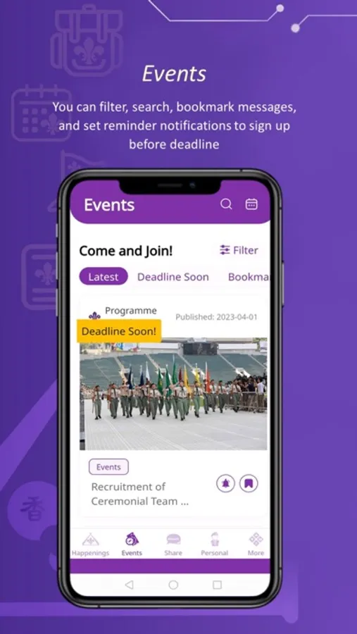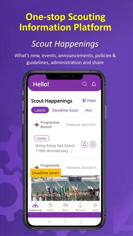 "Hong Kong Scouts" App provides a one-stop information platform for the Scout Association of Hong Kong, Headquarters Units, Regions, Districts and Subsidiaries to release the latest Scouting information. In addition, it has special personalisation functions to enhance user experience and convenience.