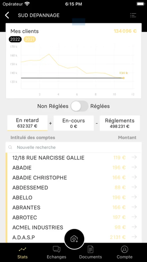 Vous aurez accès à un tableau de bord complet avec vos chiffres clés, ainsi que le détail des encours clients et dettes fournisseurs.