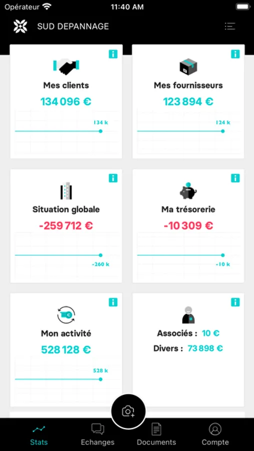 Grâce à ALOHA COMPTA vous pouvez visualiser sur un tableau de bord vos chiffres clés, connaître dans le détail les encours clients et dettes fournisseurs. Vous et vos employés pouvez également gérer vos notes de frais grâce à l’envoi des facturettes. Vous pouvez aussi communiquer de manière sécurisée avec votre comptable. L’accès aux documents est simplifié grâce à une GED (Gestion Electronique des Documents) sécurisée permettant de partager, rechercher et consulter des documents (juridiques, comptables, RH...).
