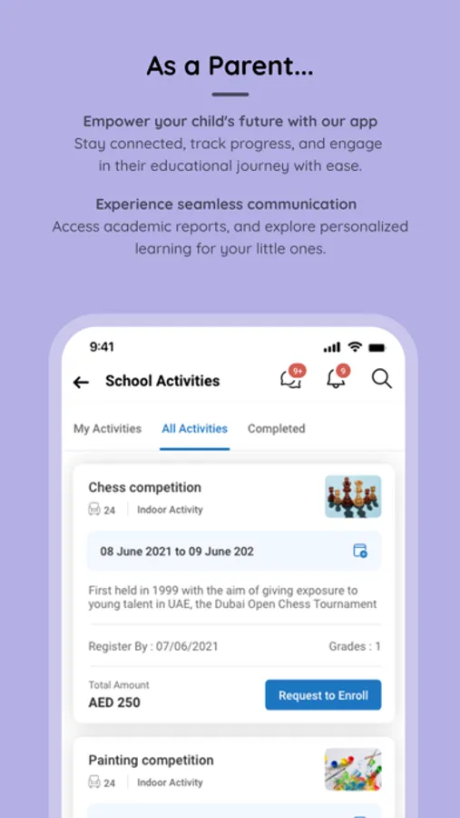 • Be notified about upcoming academic and extracurricular events and activities with our app.
