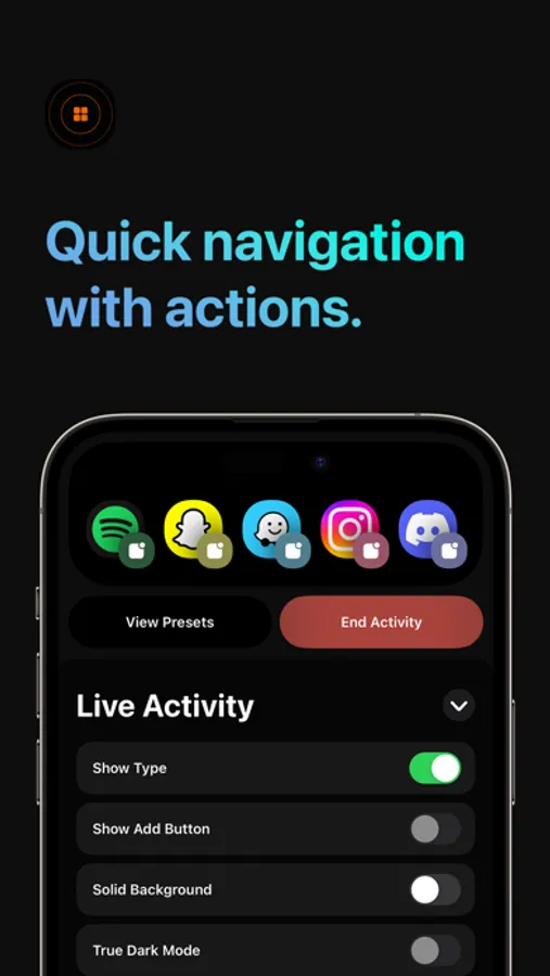 Using Live Activities with LaunchDock, you can quickly access your favorite actions from anywhere.
