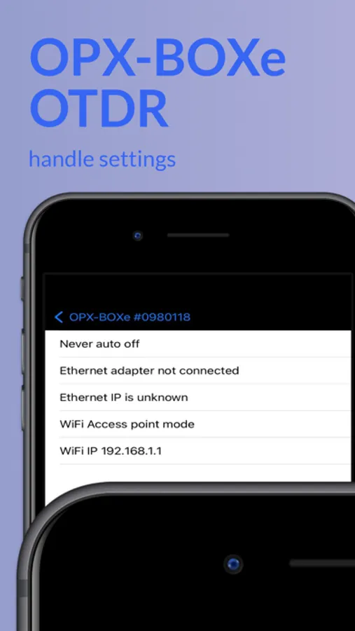 OPX-BOXe Tool app is used to remote administer OPX-BOXe OTDR via Bluetooth.