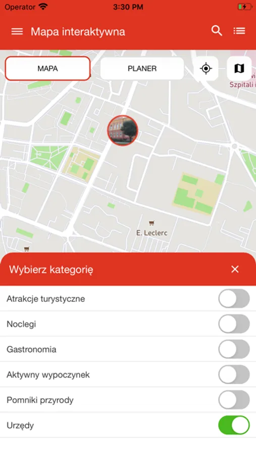 Obiekty na interaktywnej mapie są grupowane w kategoriach i podkategoriach, posiada dane opisowe i kontaktowe oraz multimedialne. Dodatkową funkcją jest uruchomienie funkcji nawigacji prowadzącej do wybranego obiektu.