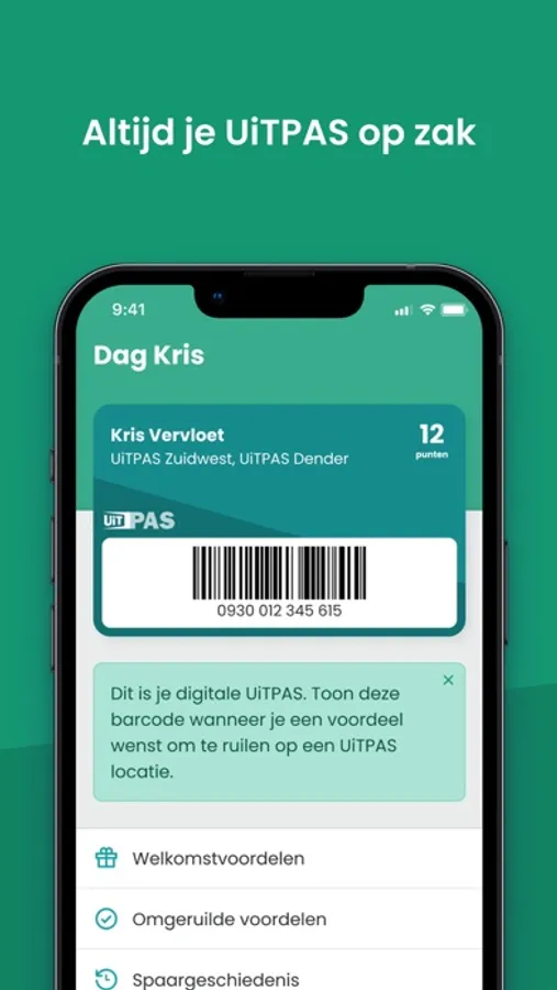 Met de UiTPAS app spaar je punten door de QR-code op de spaarzuil te scannen met je smartphone. Bekijk hoeveel punten je al spaarde en alle UiTPAS-voordelen. Met de UiTPAS app staat je UiTPAS gewoon op je smartphone!