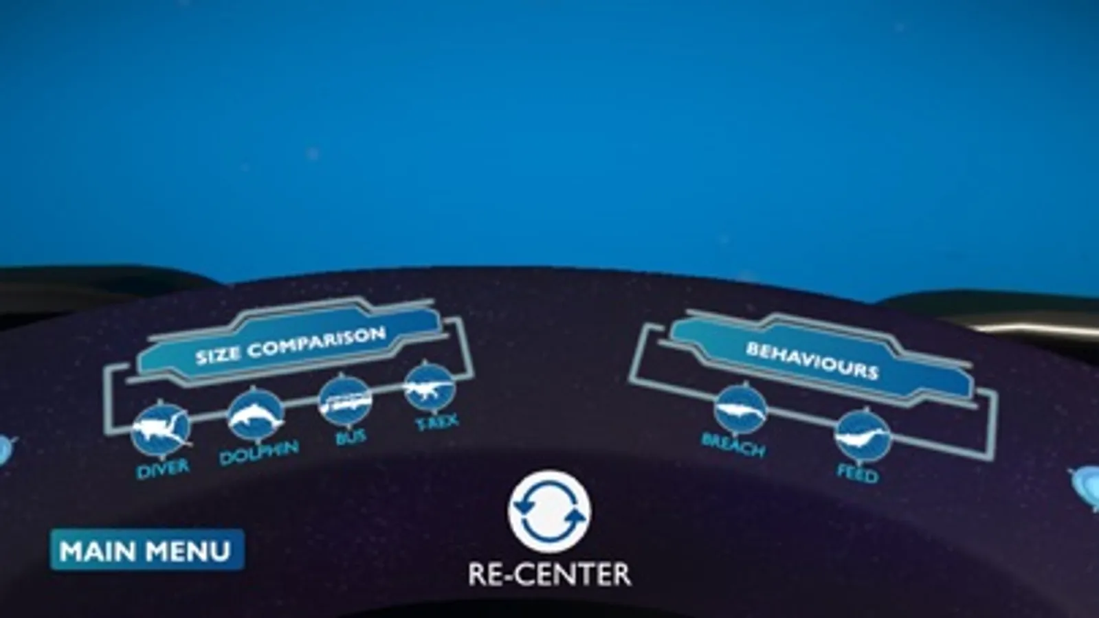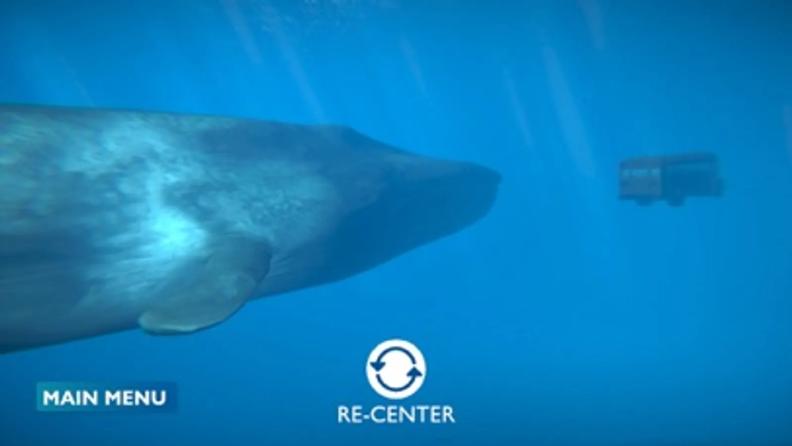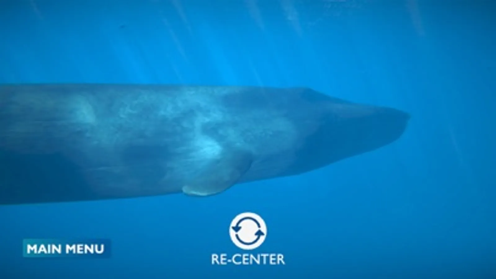 “Submarine View” plunges you deep into the blue whale's marine habitat; this time, you’re in its home. Cruising in a private submersible, your expedition commences with a close encounter as a blue whale glides past your sub’s porthole! The sub has eight key controls on its dashboard. Each triggers a different experience. Four allow you to visualize the massive size of the blue whale by directly comparing it to a diver, a pod of dolphins, a school bus and a T-Rex. Two other controls trigger signature blue whale behaviors; watch as the whale surfaces for air, and witness one of the most spectacular performances in all of nature—the blue whale’s lunge feed.