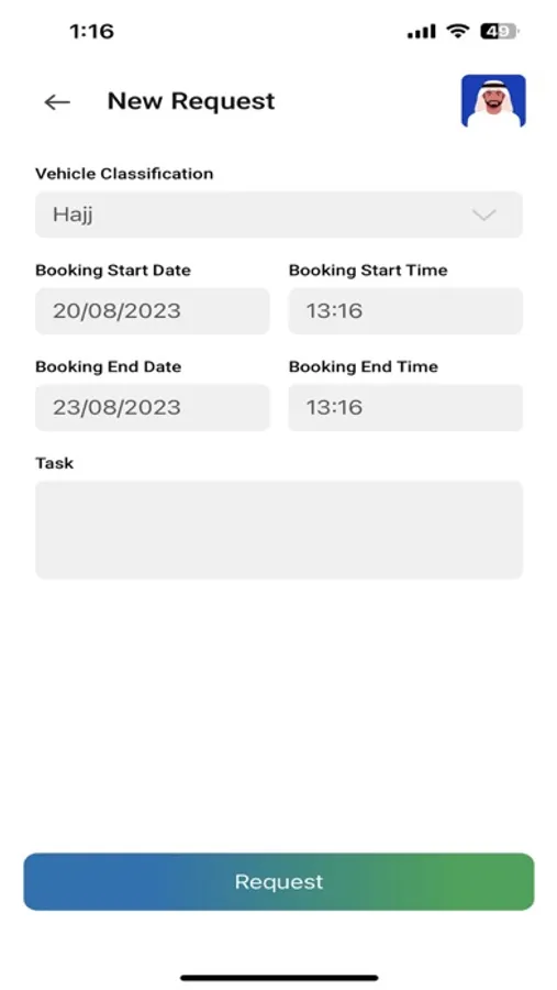 SFDA Transportation is a mobile application that allows car renters to manage their car rentals, allowing for easy remote pick up of cars. SFDA Transportation is an easy to use mobile app that allows the user to login using their company registered email address, view their bookings, pick up their vehicles without an employee present and even return the vehicle once their booking is over to a predesignated parking areas. All the process is done using their mobile device and is completely electronic. From navigating to the vehicle pick up location, all the way to inspecting the vehicle and taking pictures for the vehicle condition, and even returning the vehicle to one of the predesignated parking areas. The application also integrates with the governmental platform TAMM which issues automatic Vehicle Driving Authorizations for the renter at the start of the booking and terminates it automatically at the end of the booking scheduled.