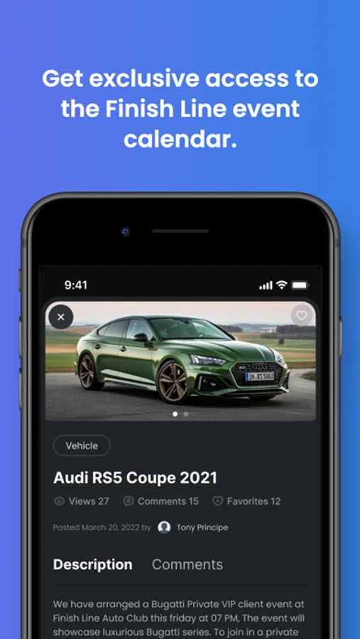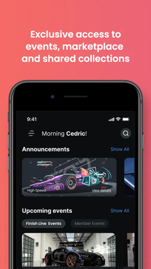 Finish Line owners will have exclusive access to the member events calendar, quarterly newsletters and our blog. We’re also excited to introduce the Finish Line App, giving owners a platform to showcase their classified vehicle and collectable listings, private garage images and collection management, calendar of events and much more. Owners can opt-in for notifications on the latest news and happenings, as well as updated classifieds.