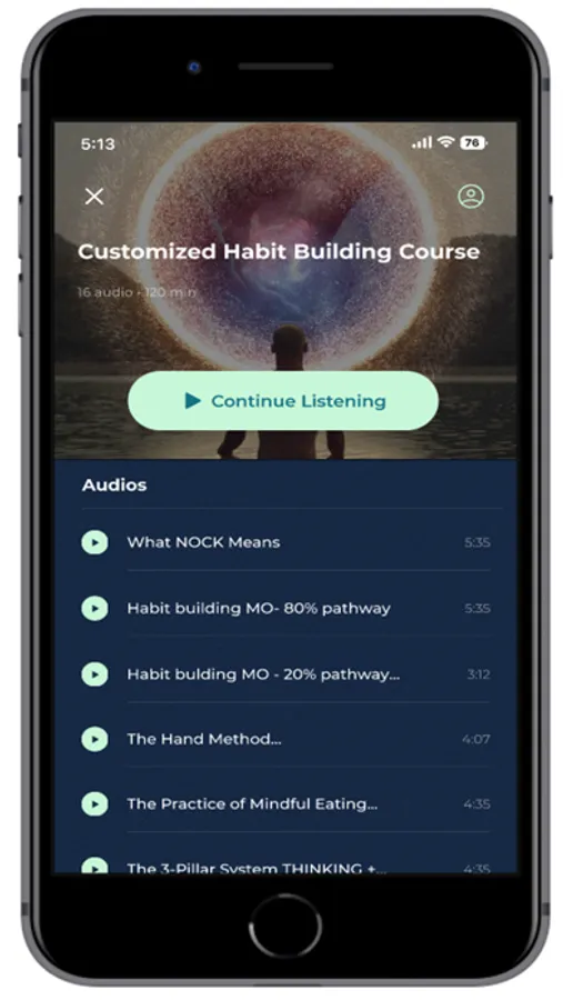 Access NOCK’s guides programs for thinking, consumption, and movement. Each program is filled with self-guided audio files that will give you knowledge, high-impact habits, and practical guidance about how to achieve your wellness goals your way.