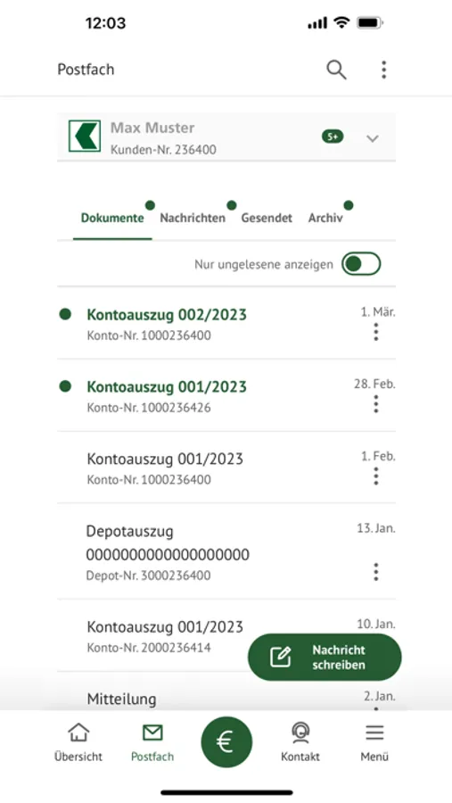 - Ihre Kontoauszüge oder Nachrichten direkt in der App abrufen