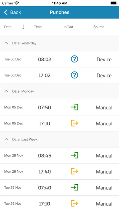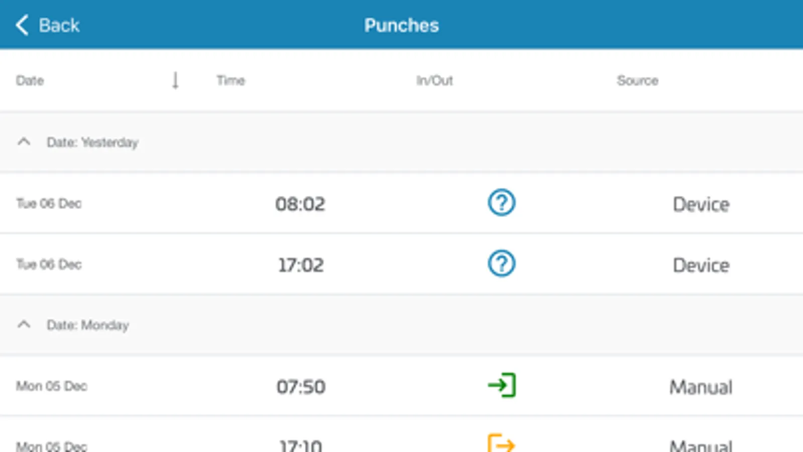 Quick Punch-In / Punch-Out with clever built-in direction deduction.