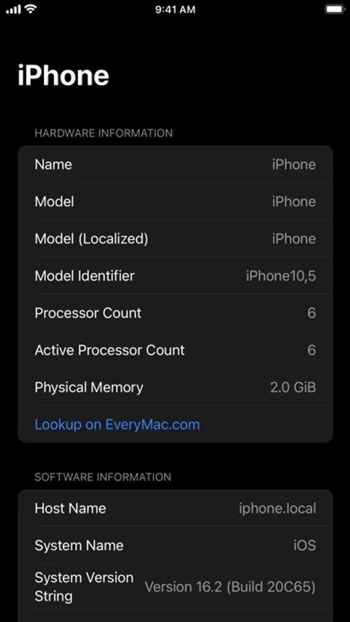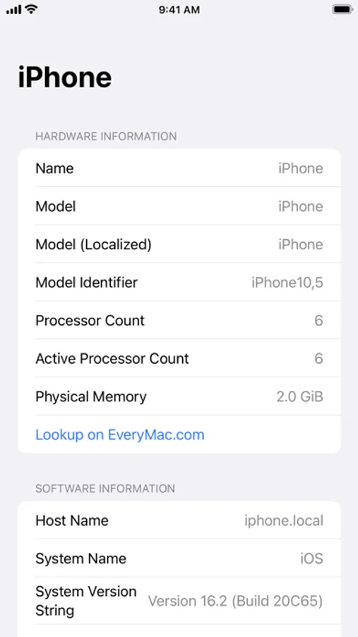 A simple app to check your iPhone or iPad's system specifications.