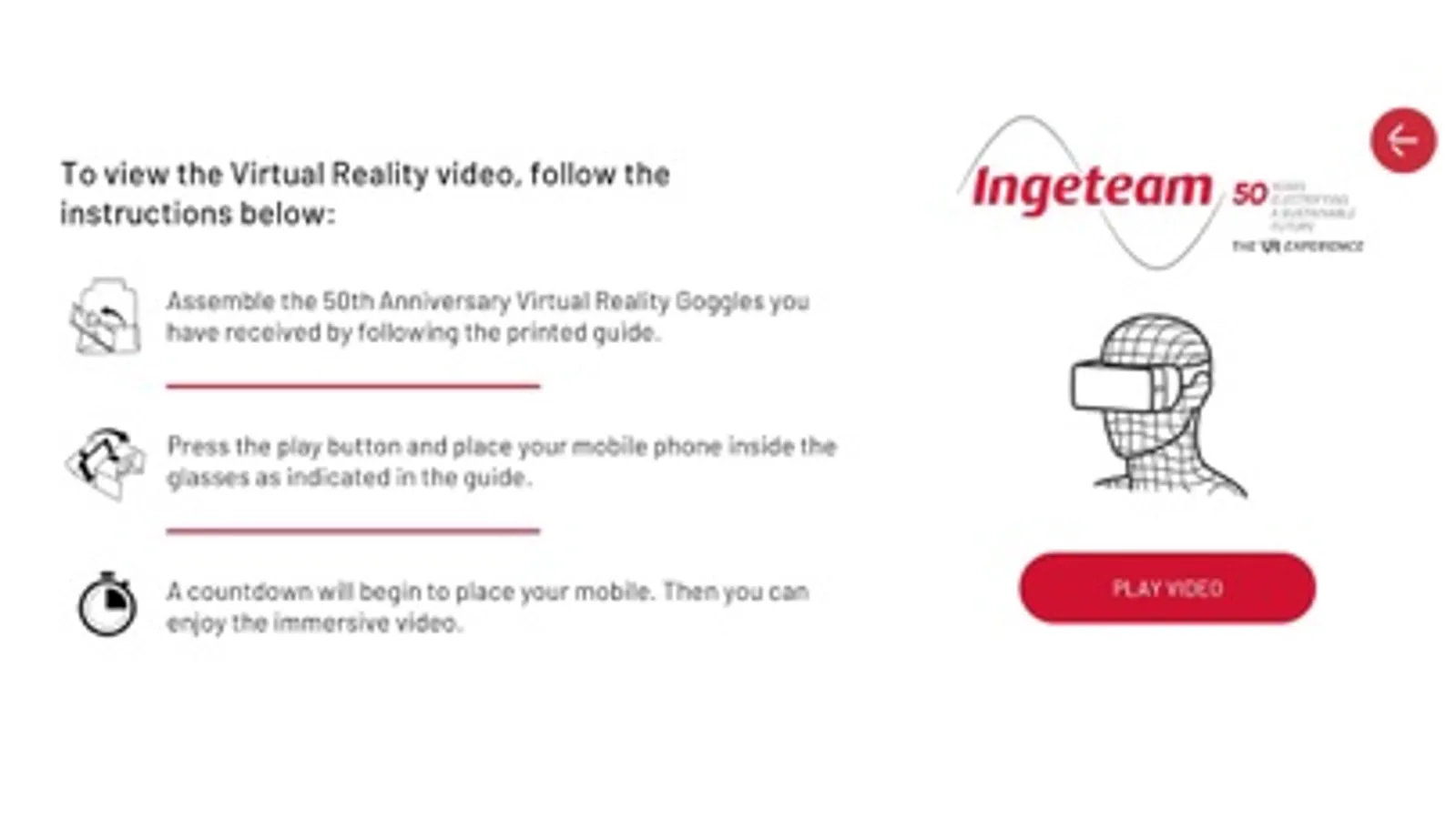 In this app you can enjoy the Virtual Reality experience developed to commemorate Ingeteam's 50th Anniversary. In order to enjoy the experience in the most optimal way, it is recommended to have the VR cardboard glasses provided by Ingeteam. You can also enjoy the experience if you do not have the exact model of cardboard glasses by using the buttons on the VR view to change the model of glasses to use or enjoy the experience without glasses.