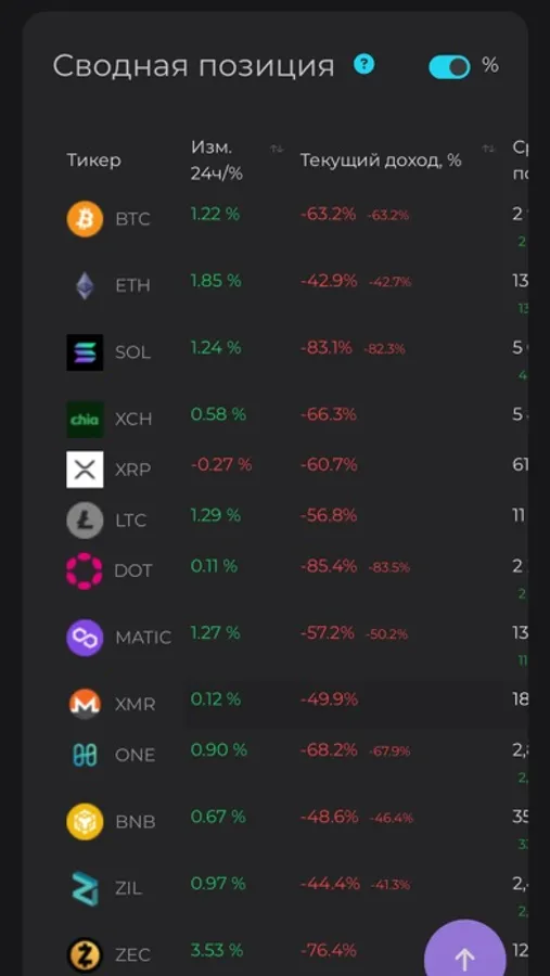 *Удобный донат-график для отображения текущей доли каждого криптоактива в портфеле