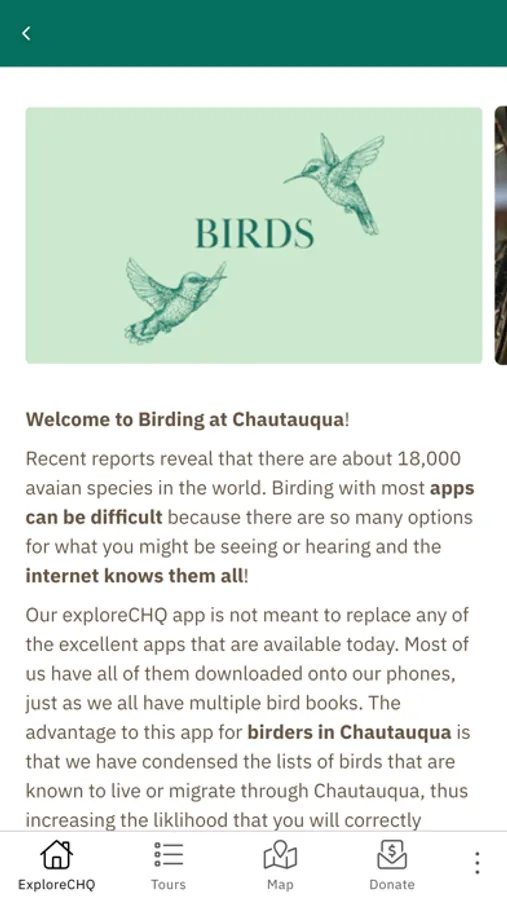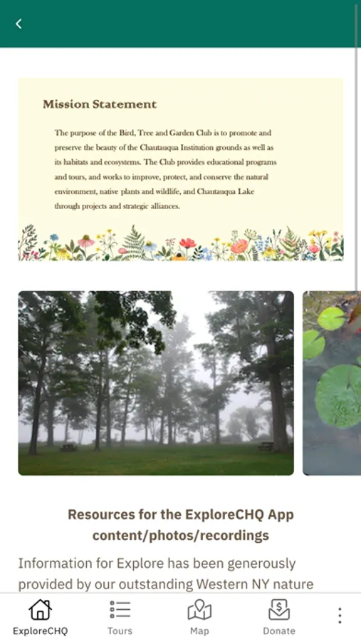 Chautauqua Institution is known for its lectures, theater, opera, symphony, ballet, sailing, golf, and tennis. But living amongst all that human activity is a rich natural world with thousands of trees and birds, hundreds of gardens, and a thriving lakeshore habitat. Use the Chautauqua Bird, Tree & Garden Club's self-guided touring app to discover the natural world on the 250-acre campus.