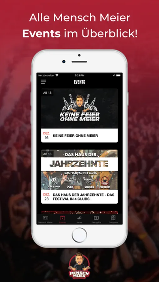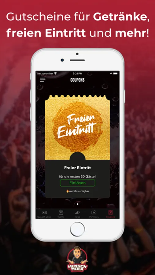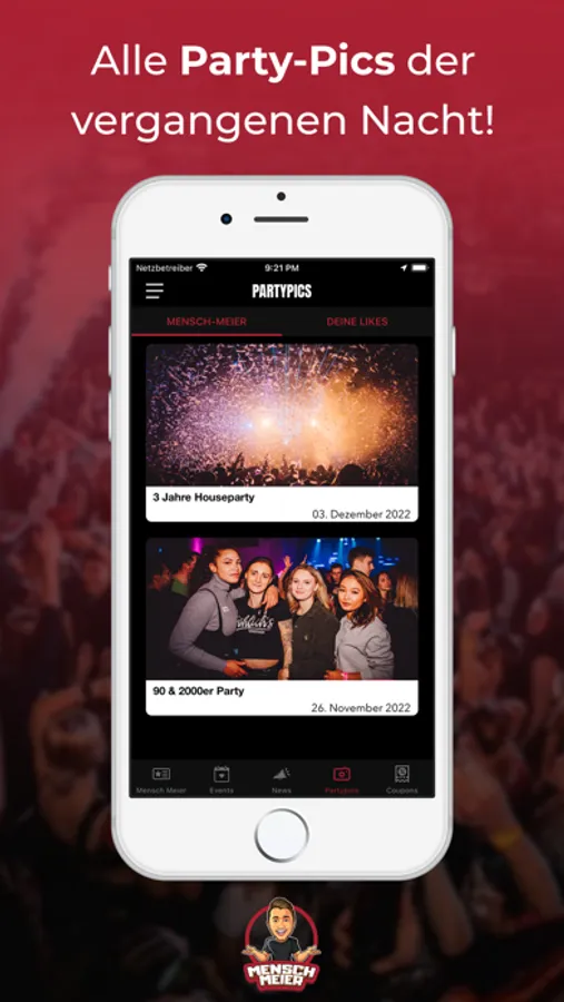 Du erfährst als erster, wann die nächste Party steigt und profitierst dabei noch von fetten Aktionen. Zum Event sparst du mit unseren Gutscheinen bares Geld. Damit du dich am Tag danach auch an den geilen Abend erinnern kannst, stellen wir alle Party-Pics in der App bereit.