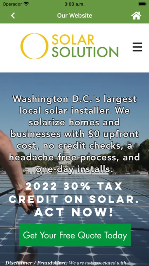 Solar Solution DC is a free app available for anyone to download and is used to communicate with Solar Solution DC. It is as simple as downloading the App and register as a user. Once registered, you can begin communicating right away. We will reach out to you keep you updated via push notifications and in-app messaging to improve your overall buying experience. Once you purchase your a Product from Solar Solution DC, feel free to write a review. We appreciate your feedback.