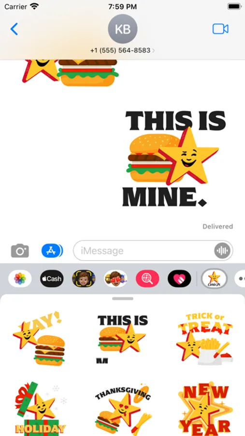Welcome to Carl's Jr. Stickers. Share all your burger cravings and feelings with friends and family. Just press and hold onto a sticker to add it to Message bubbles or photos.