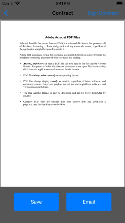 This app will allow customers to sign their contracts, pay their outstanding balances as well as allow admins to generate contracts and add clients.