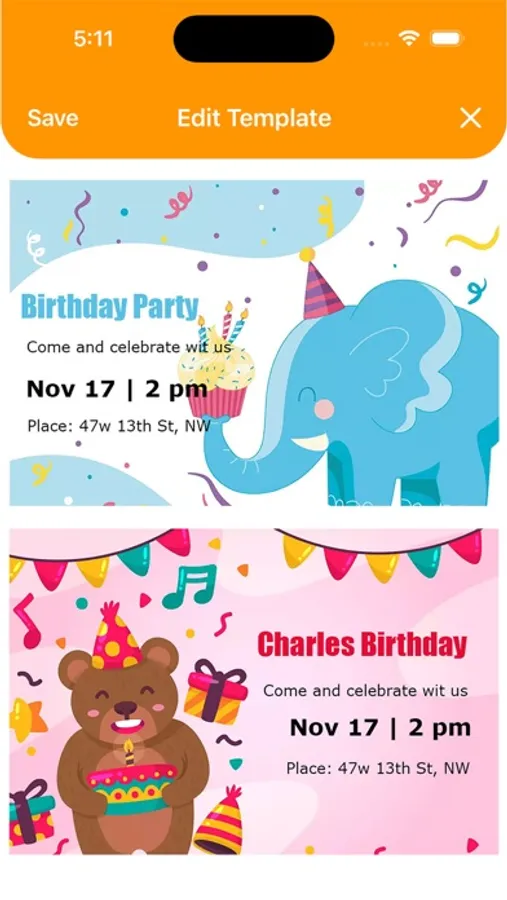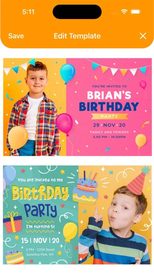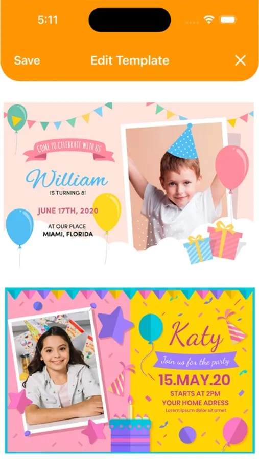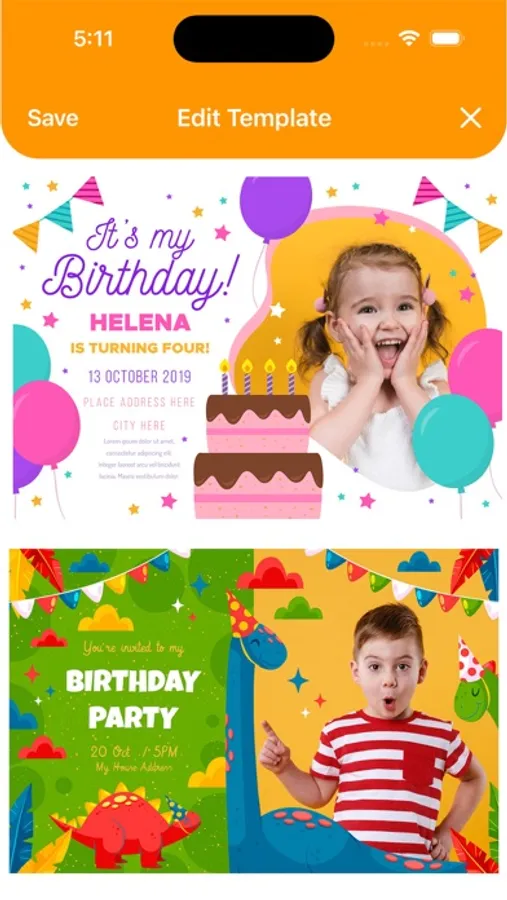 In this app you can design your own digital birthday invitations for children's parties, but you can also create the birthday posters, using our designs, adding stickers, or if you prefer you can add the photo and name of the birthday boy or girl. This app has such easy to use tools that you do not need to have design skills, just a lot of creativity.