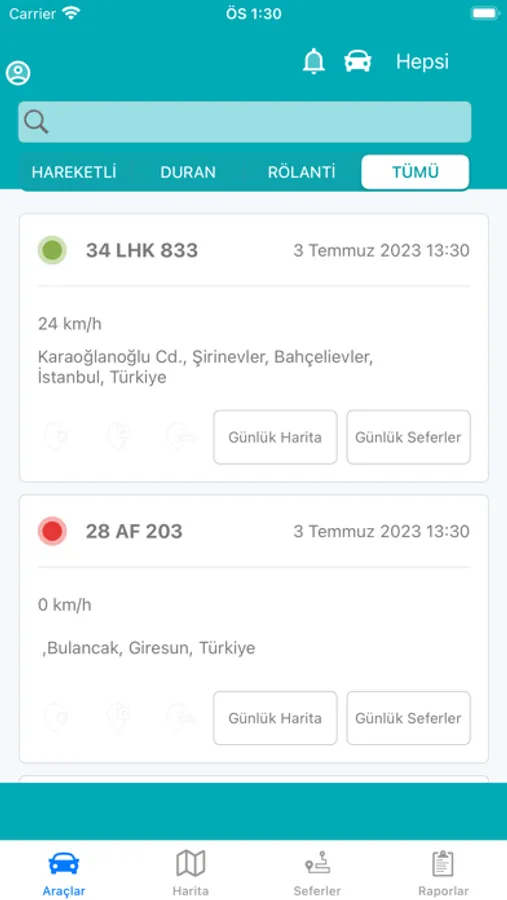 Filonuzdaki araçların kullanım alışkanlıklarını takip edebilir, hız aşımlarında uyarı alabilirsiniz.