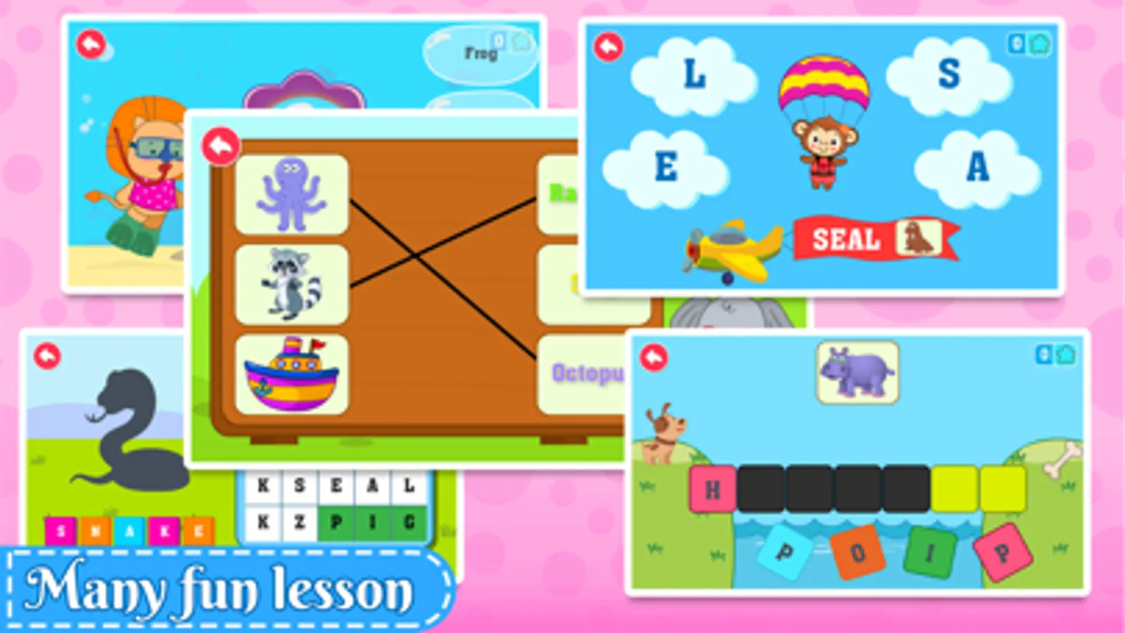 - Kids learning games act as brain trainer & draw their attention to practice the spellings of Alphabets (letters), Numbers (123), Colors, Animal name, Fruits and Shapes and improve kids memory skills.