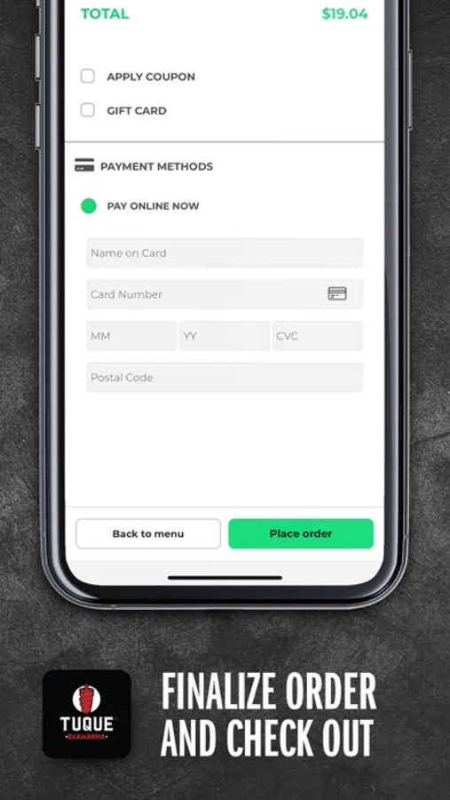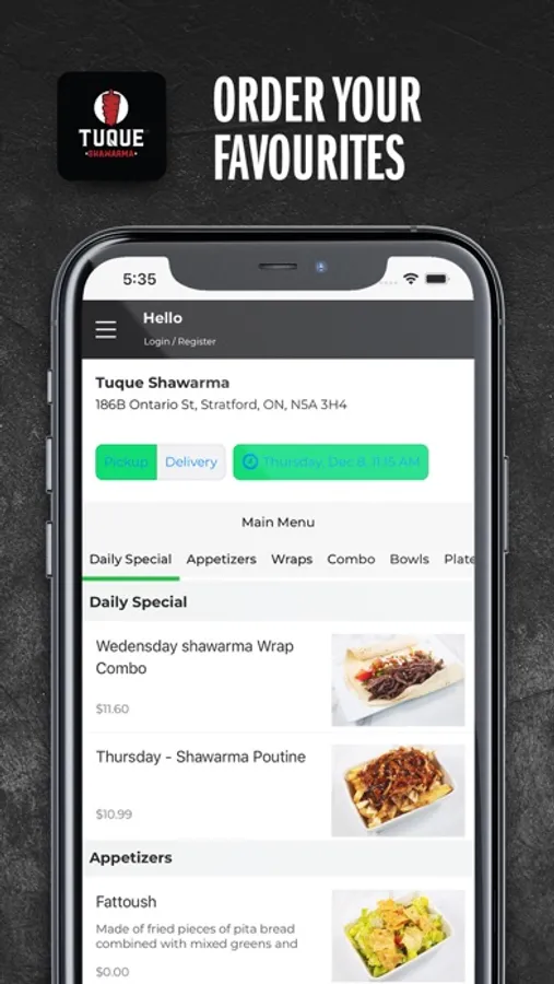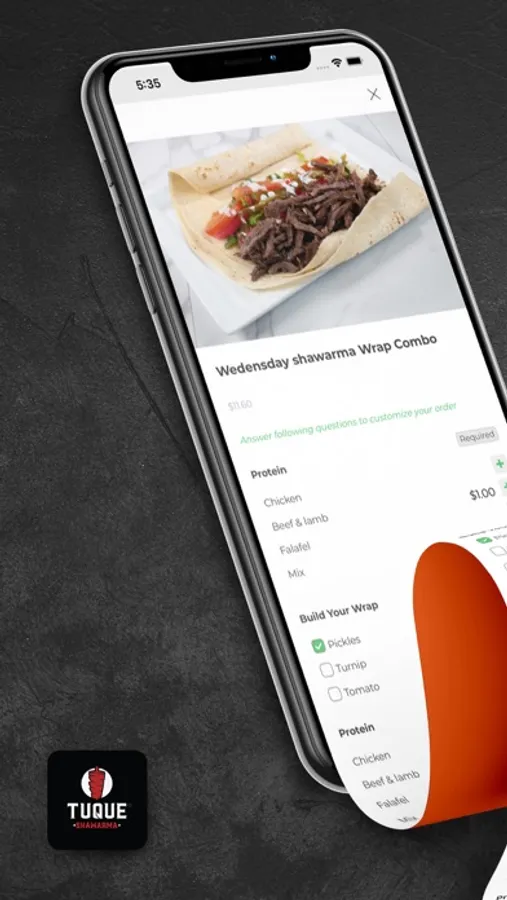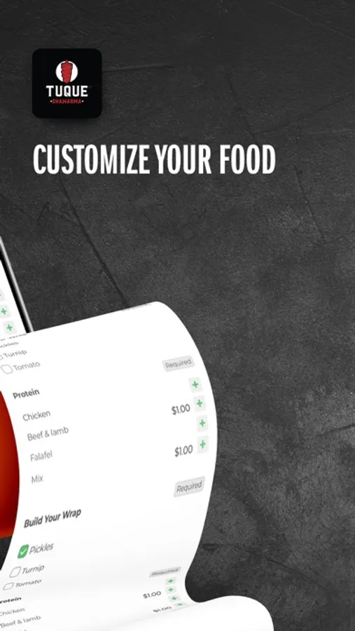 Download NOW, order food, satisfy your hunger, and benefit from Tuque Shawarma Food Ordering App!